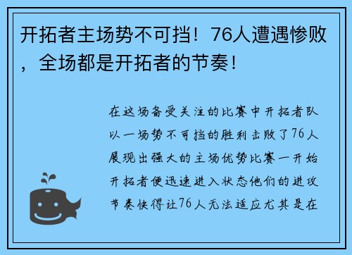 从这场比赛可以看出,快船队的进攻和防守已经达到了一个新的高度,球队的整体实力无疑得到了提升。球迷们可以期待,在接下来的赛季中,快船队将继续展现他们的强大实力,成为其他球队最不愿面对的对手。